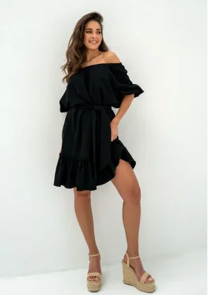 Brienne - Muślinowa sukienka mini z falbanką Czarna