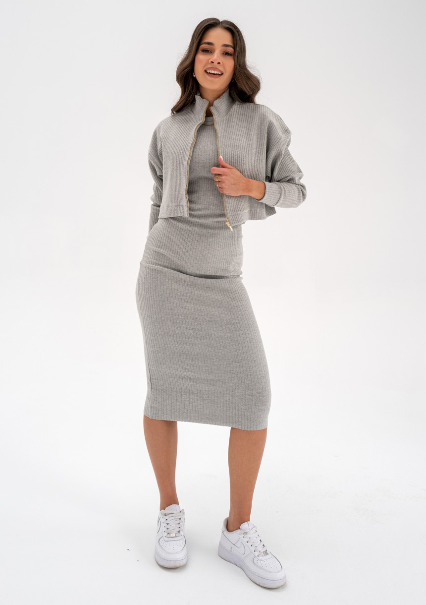 Aster - Sukienka bodycon z dzianiny w prążki Szara