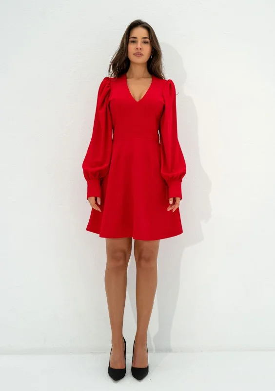Zalotna sukienka mini w czerwonym kolorze. Idealna na randkę, małą imprezę, spotkanie. Pełna wdzięku, subtelności i w pełni elegancka.