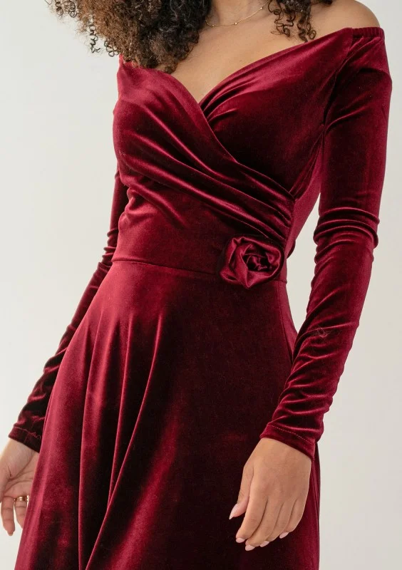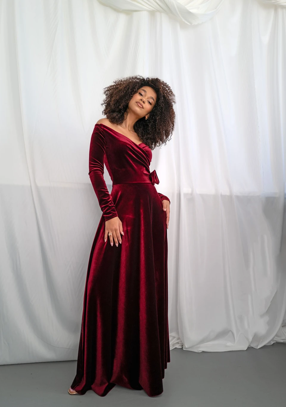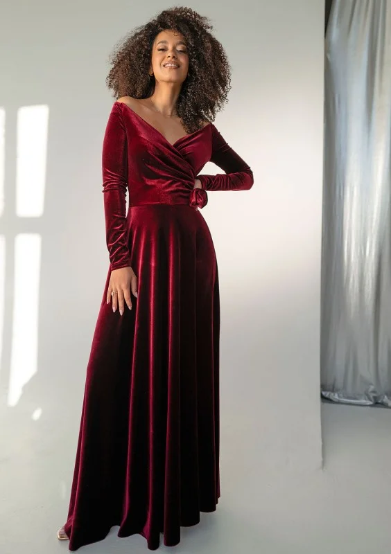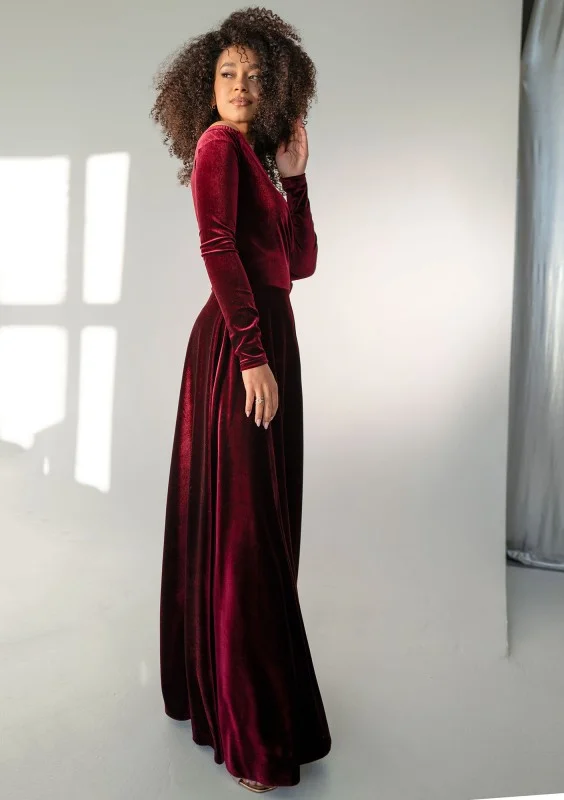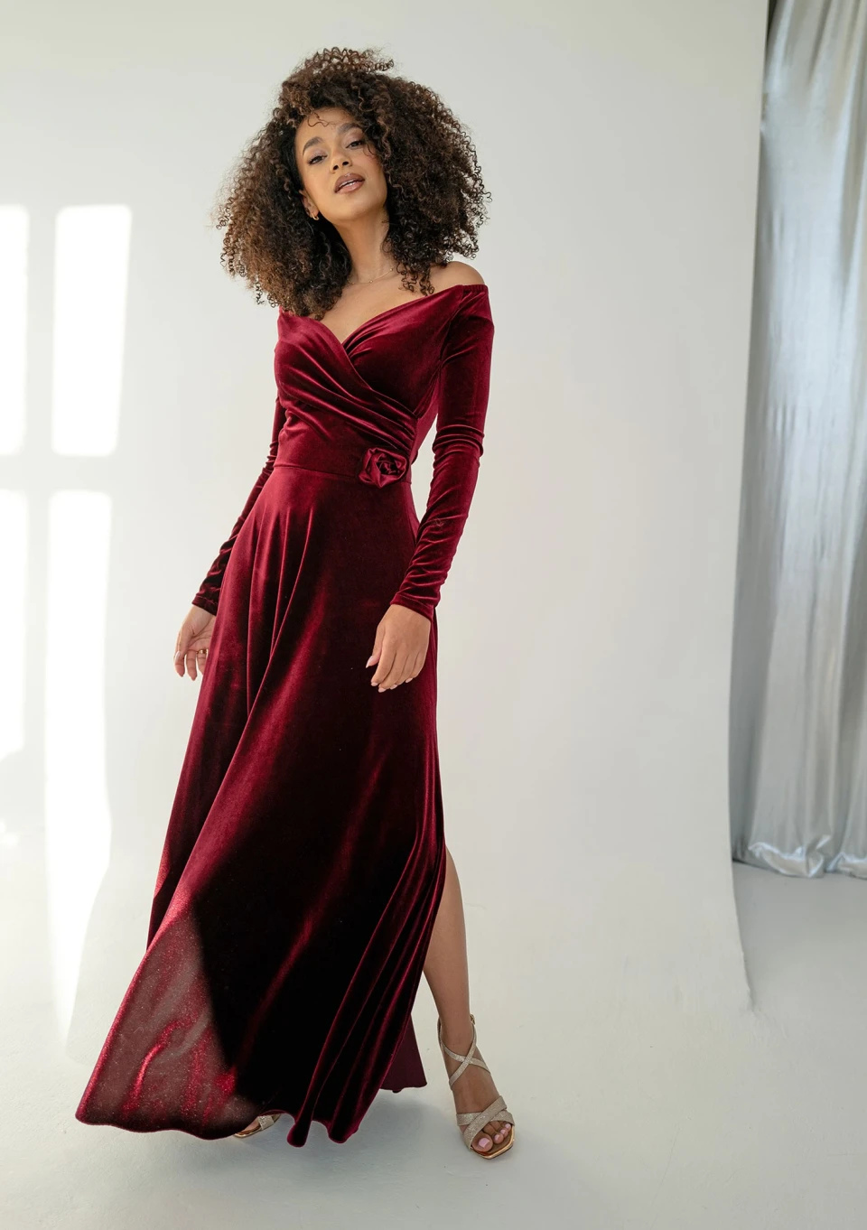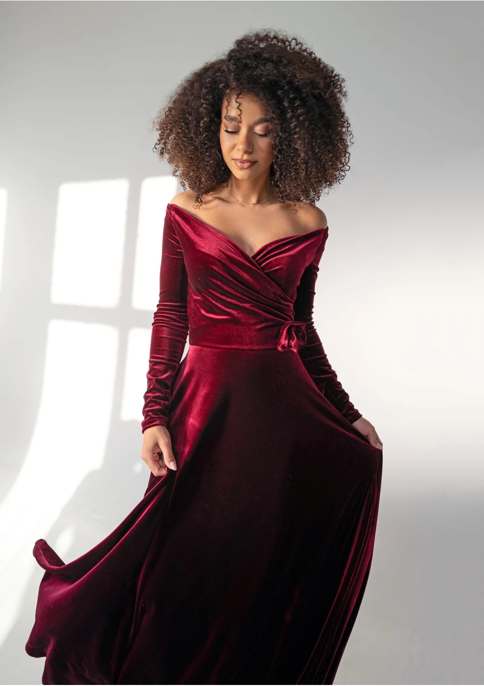 Rosey Velvet - Elegancka sukienka maxi Bordowa