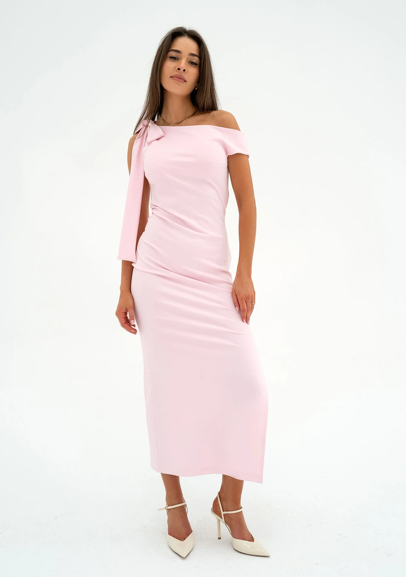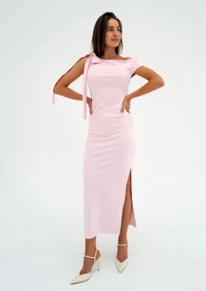 Chiara - Sukienka maxi z wiązaniem Pudrowa