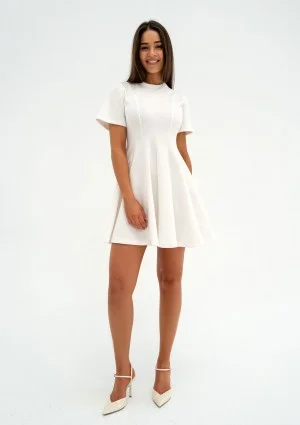 Klasyczna sukienka mini o rozkloszowanym kroju z krótkim rękawem zapewni Ci szerokie pole stylizacyjnych możliwości. Z łatwością stworzysz z nią zarówno elegancki look na rodzinne uroczystości, jak i swobodniejszy zestaw na letnie garden party czy spontaniczne wyjście z przyjaciółmi. Subtelny i pełen lekkości fason możesz zastosować w codziennym ubiorze w cieplejsze dni. Śmiała forma mini cudownie podkreśli zgrabne nogi. Ta klasyczna kreacja sprawdzi się jako sukienka na randkę, imprezę, półformalne spotkanie.