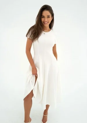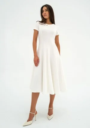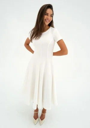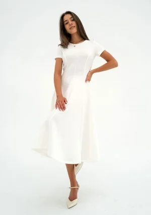 Jasmen - Rozkloszowana sukienka midi Ecru