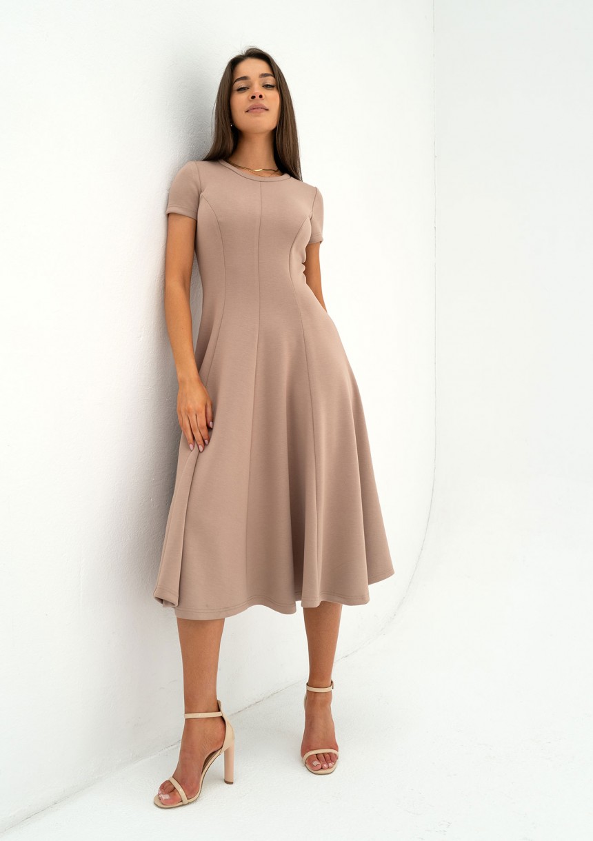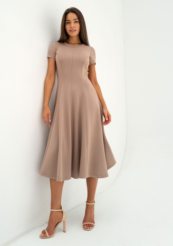 Elegancka sukienka w kolorze latte, zaprojektowana dla kobiet, które pragną emanować klasą i subtelnością. Cudnie rozkloszowana, uszyta z miękkiego materiału z wiskozą.