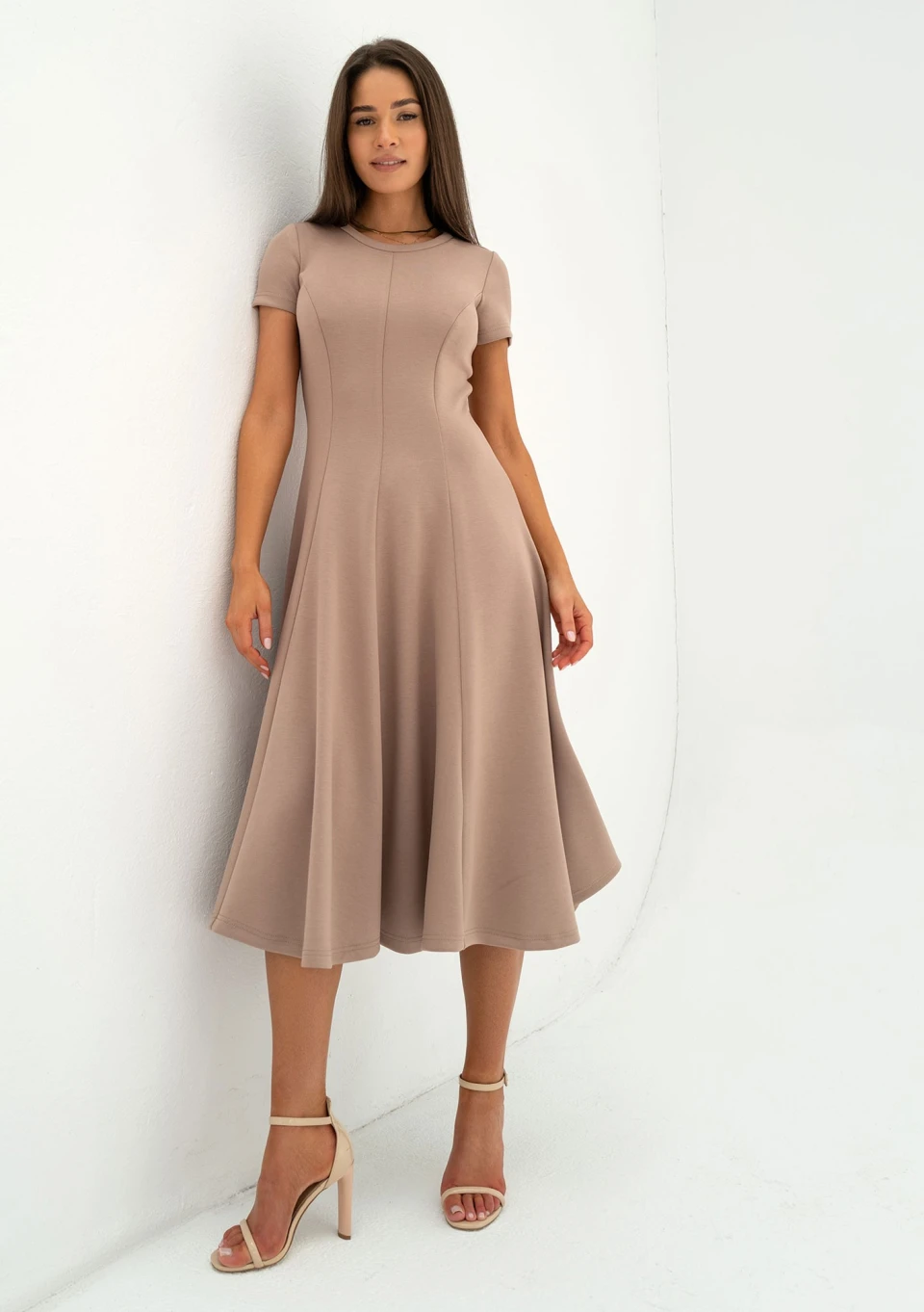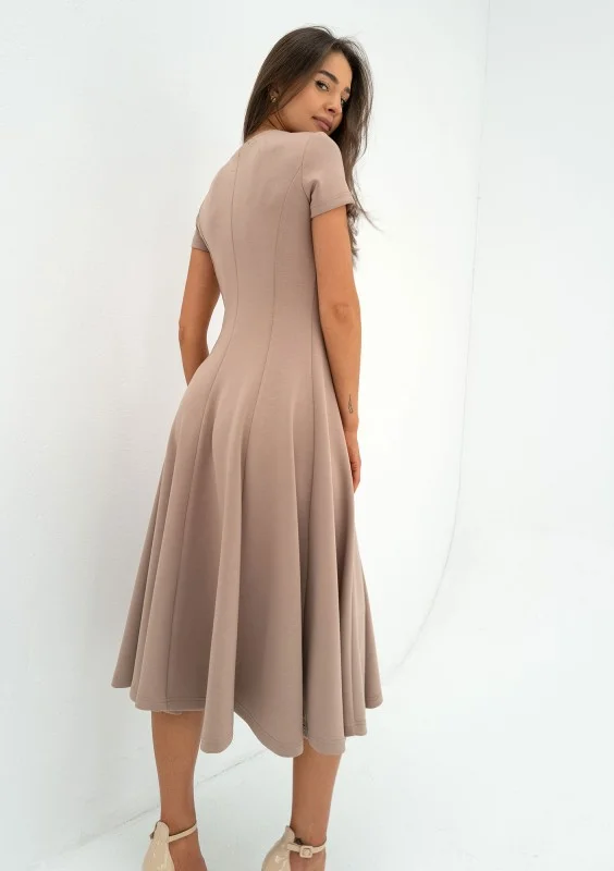 Jasmen - Rozkloszowana sukienka midi Latte