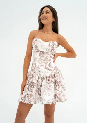 Leyna - Gorsetowa sukienka bombka mini Beige Print