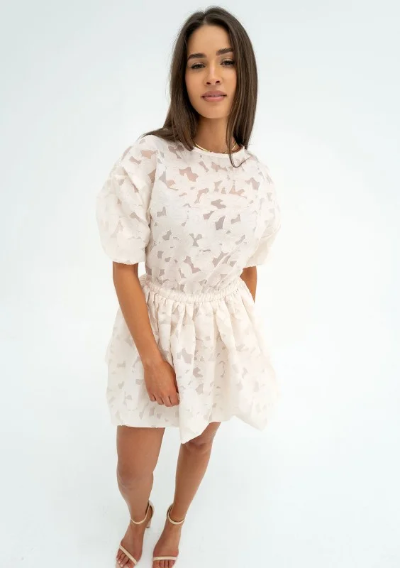Katie - Sukienka bombka mini Beżowa