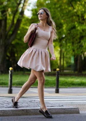 Niezależnie od tego, czy wybierzesz ją na eleganckie przyjęcie, casualowe spotkanie z przyjaciółmi, czy wieczorne wyjście, sukienka bombka zagwarantuje Ci status ikony stylu. To najmodniejszy fason, który musisz mieć w swojej garderobie, jeśli chcesz być na bieżąco z najnowszymi trendami! Na eleganckim przyjęciu będzie pięknie wyglądać w zestawieniu z naszym krótkim żakietem Iris w tym samym, beżowym kolorze. Koniecznie wybierz tę sukienkę w takim duecie, a będziesz miała gotowy zestaw na rodzinną uroczystość.