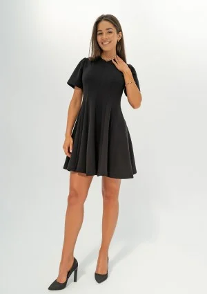 Czarna sukienka mini to kwintesencja subtelnego wdzięku i komfortu! Jej rozkloszowany krój sprawia, że pięknie układa się w ruchu, dodając lekkości i swobody. Krótkie rękawki czynią ją idealną na cieplejsze dni. Wykonana z przyjemnej w dotyku wiskozy, zapewnia pełen komfort. Nela to niezwykle wszechstronna kreacja, która sprawi, że przy każdej okazji zaprezentujesz się modnie i elegancko. Nasza sukienka jest w 100% polskim produktem.