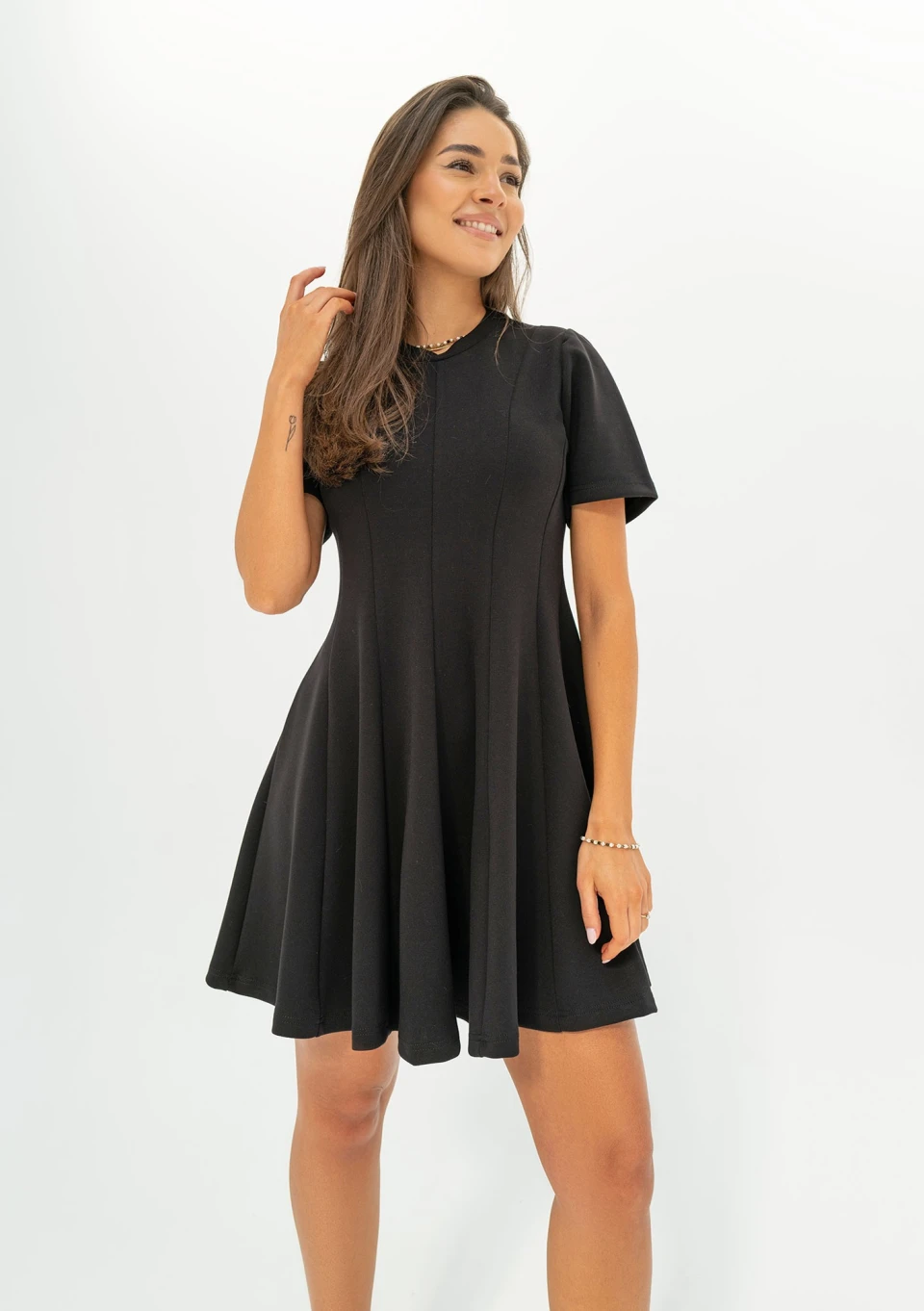 Nela - Rozkloszowana sukienka mini Czarna