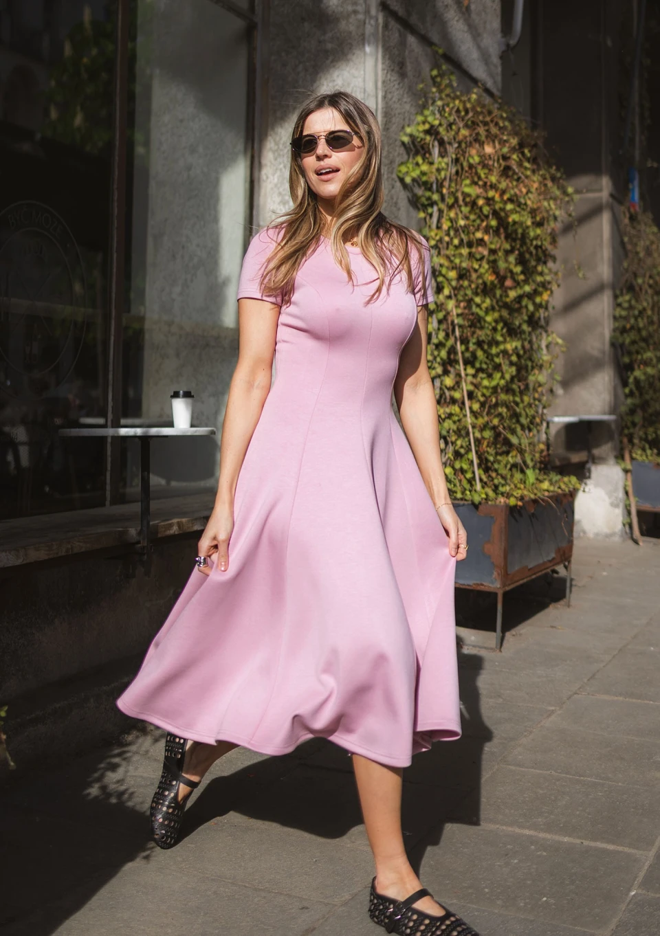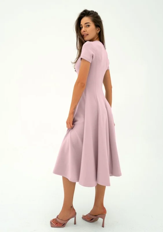 Jasmen - Rozkloszowana sukienka midi Pudrowa