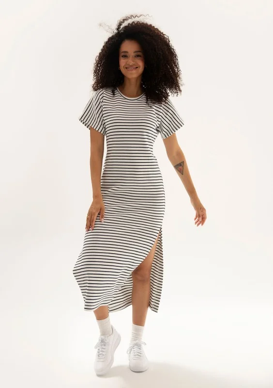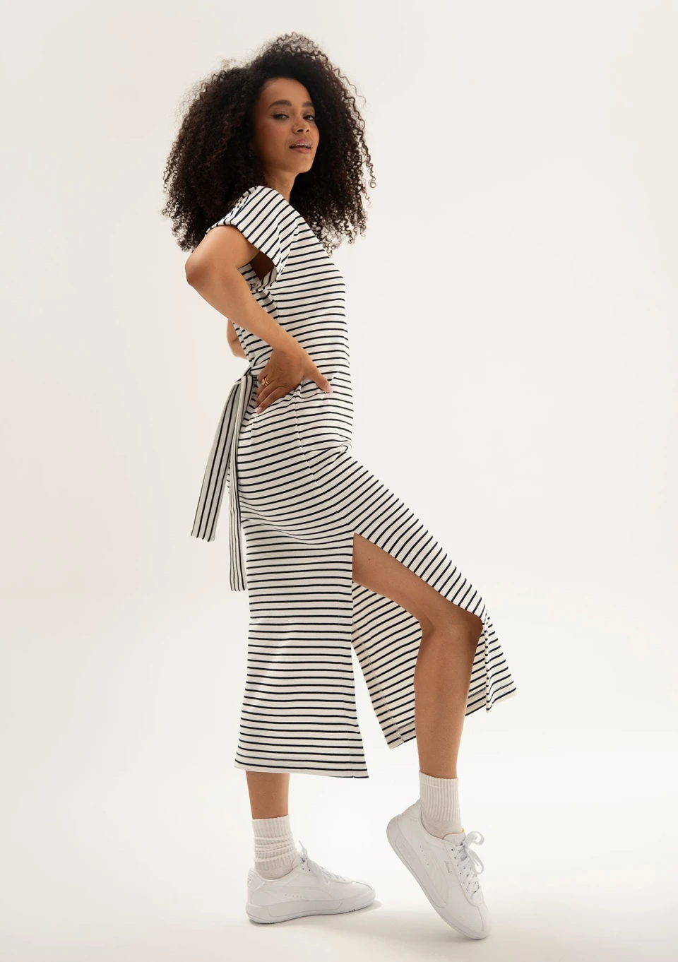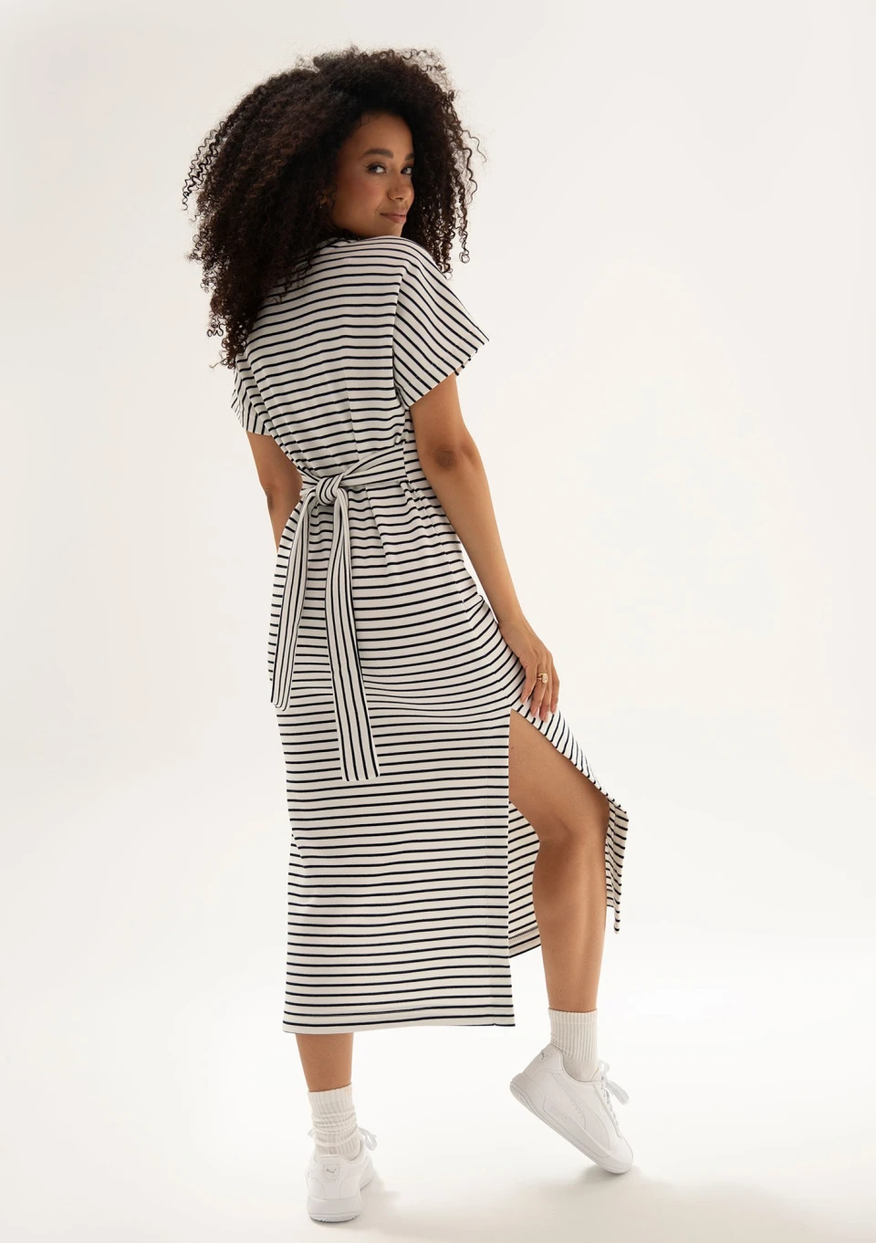 Everyday Dress - T-shirtowa sukienka z taliowaniem w Paski