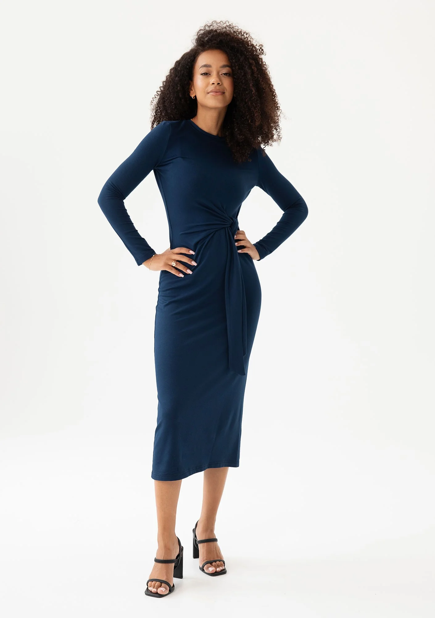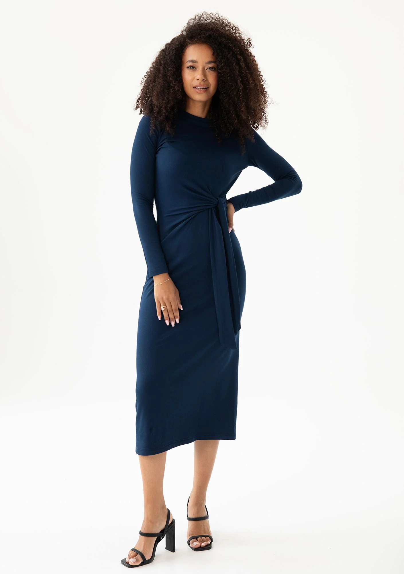 Solene - Dopasowana sukienka midi z wiązaniem na boku Granatowa