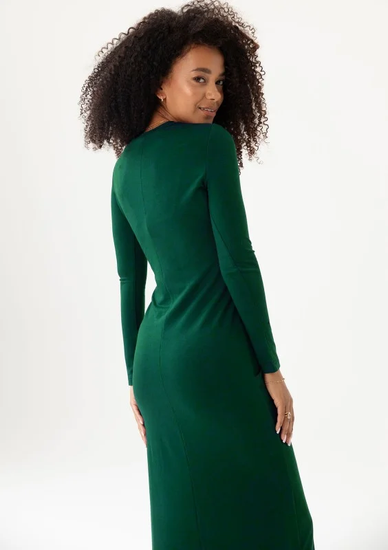 Solene - Dopasowana sukienka midi z wiązaniem na boku Zielona