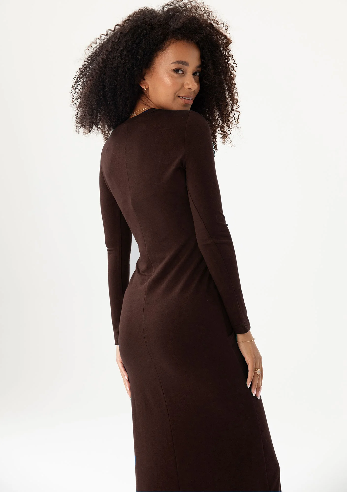 Solene - Dopasowana sukienka midi z wiązaniem na boku Brązowa
