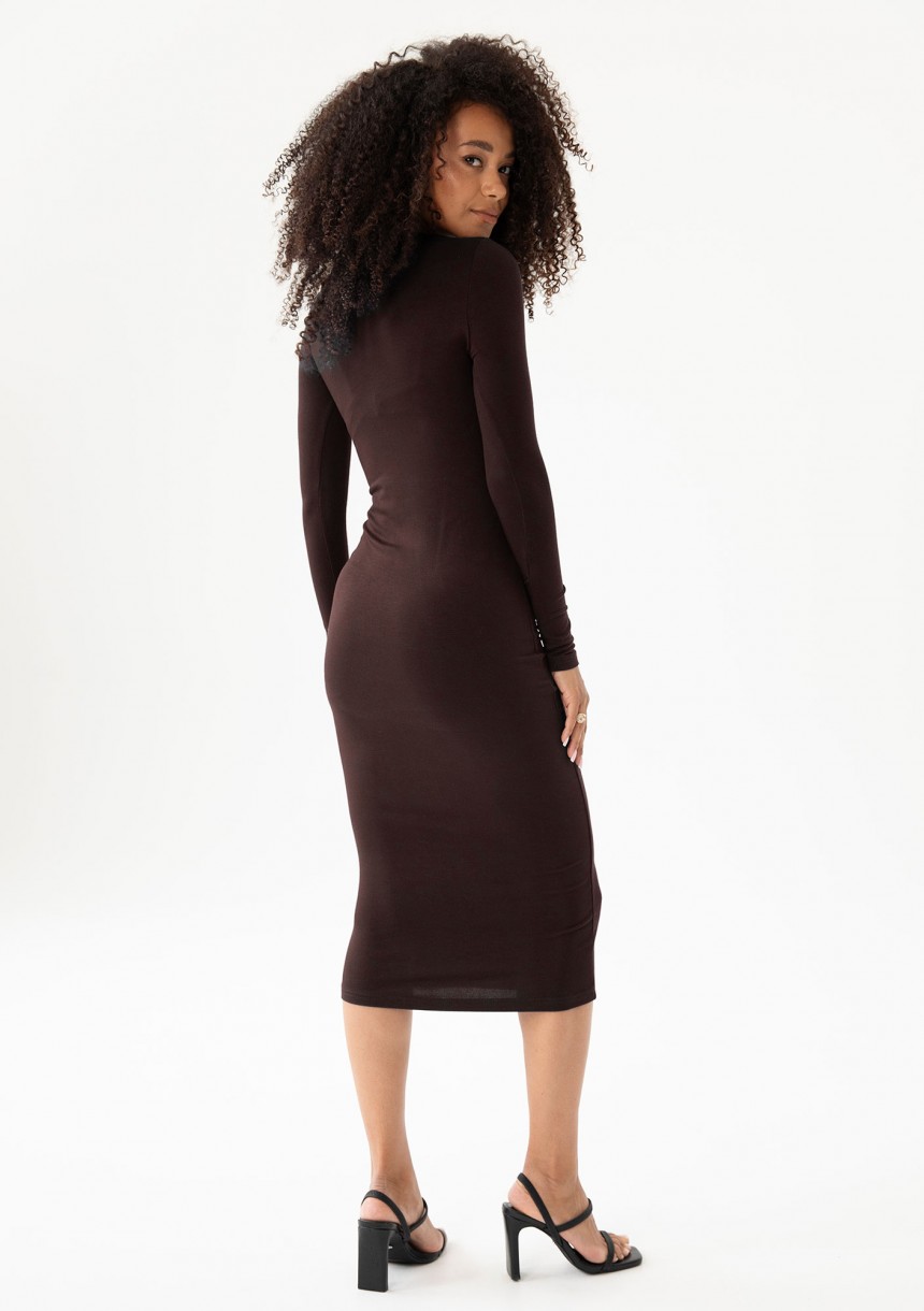 Keyline - Dopasowana sukienka z efektownym wycięciem na dekolcie Brązowa