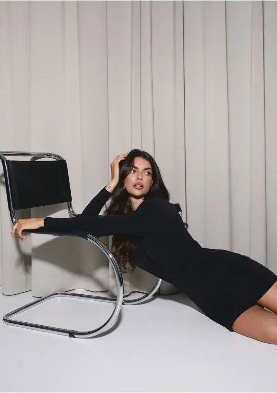 Leyla - Długa dzianinowa sukienka z wiskozy Czarna