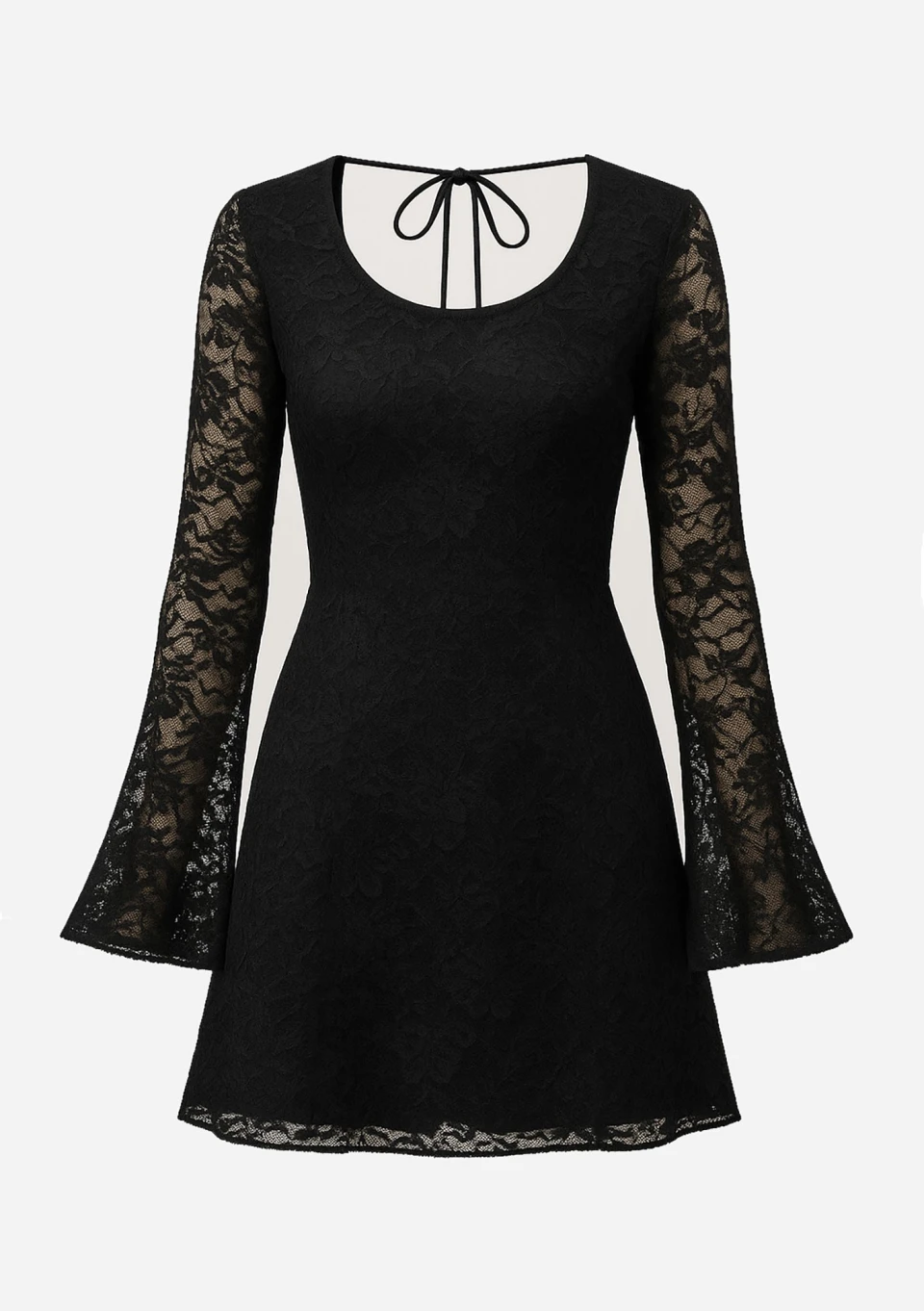 Elise - Koronkowa sukienka mini z rozkloszowanym rękawem Czarna