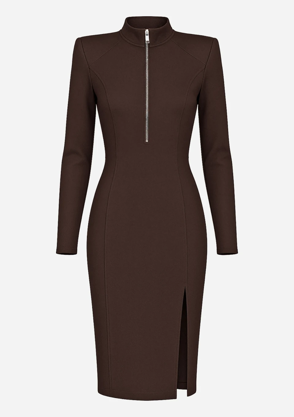 Mira - Sukienka zip z rozcięciem Brązowa