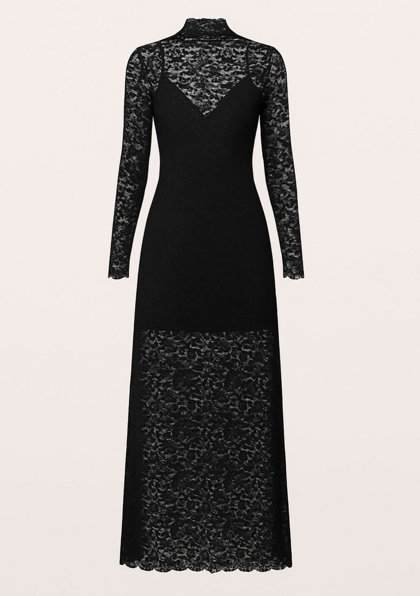 Claire to zmysłowa, dwuelementowa sukienka maxi. Czarną, subtelną formę mini na ramiączkach możesz pokryć koronkową warstwą. Uzyskasz olśniewającą, wieczorową kreację!
