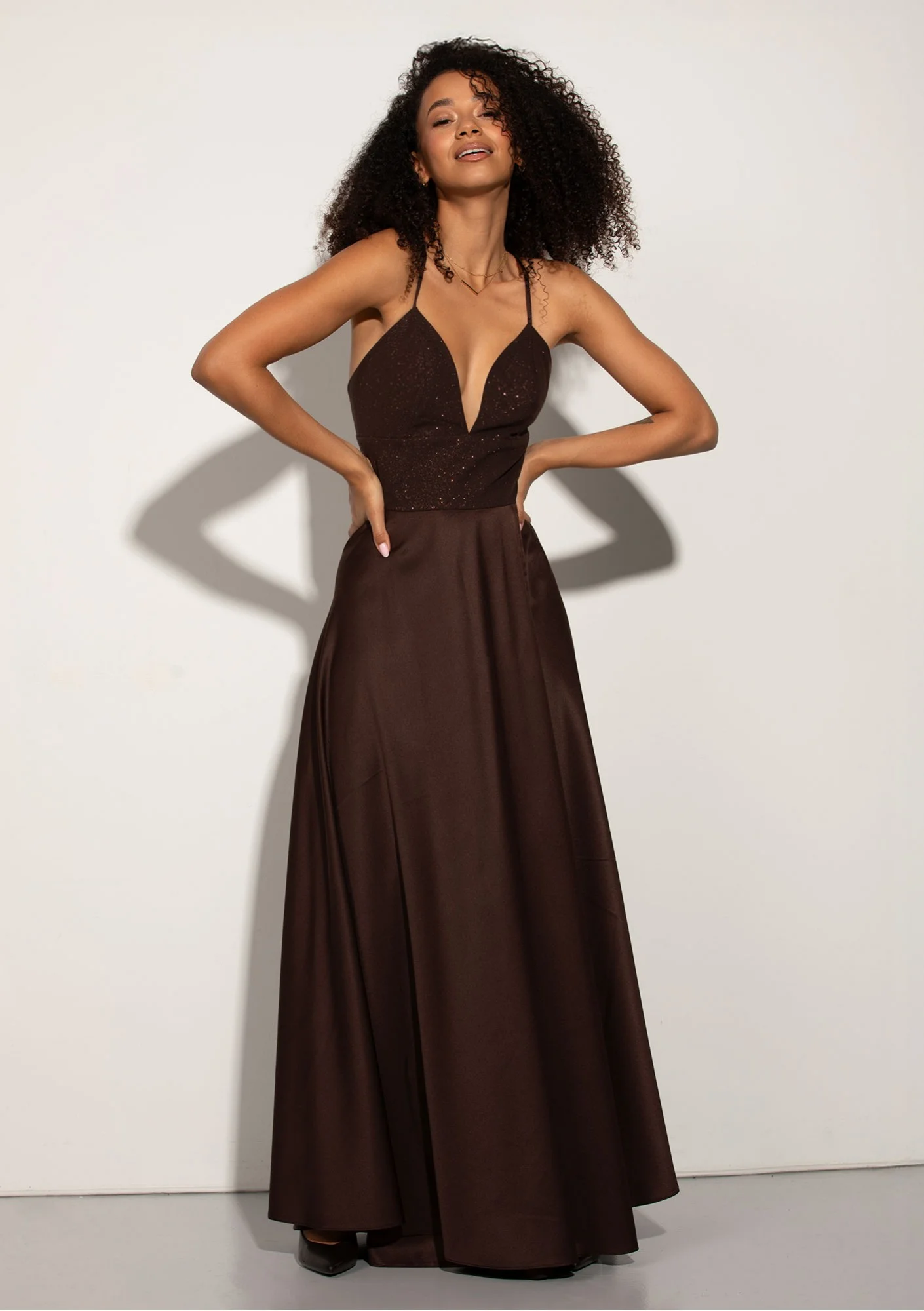 Selena - Sukienka maxi na ramiączkach Brązowa