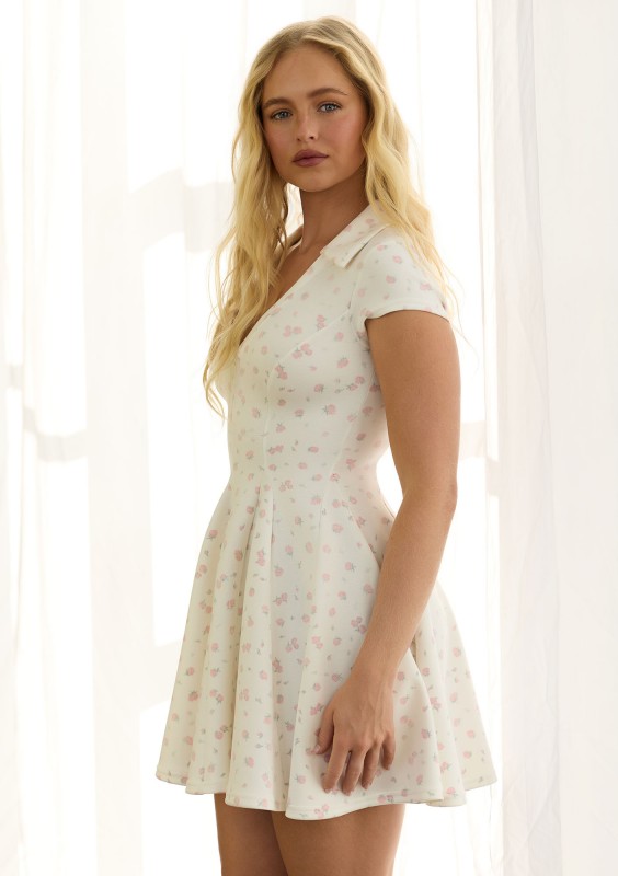 Rosie - Rozkloszowana sukienka z kołnierzykiem Roses