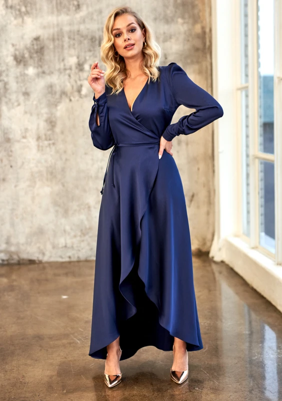 Kopertowa sukienka z asymetrią Premium Granatowa F01