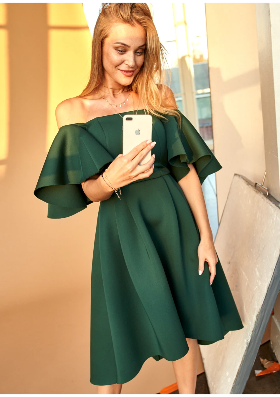 Shira - Dopasowana sukienka midi z zamkiem Bordowa