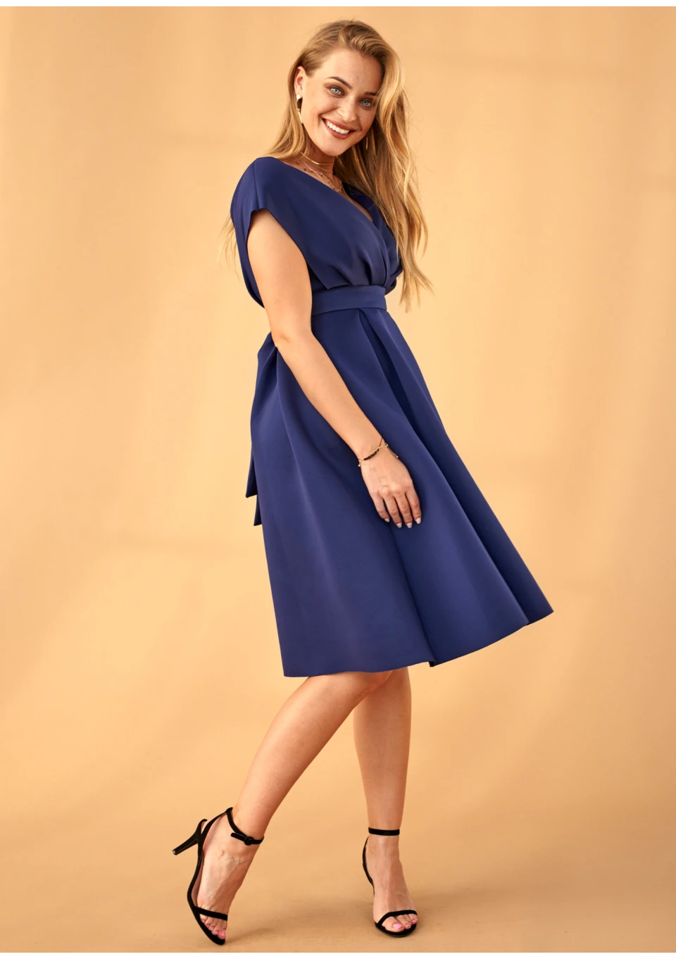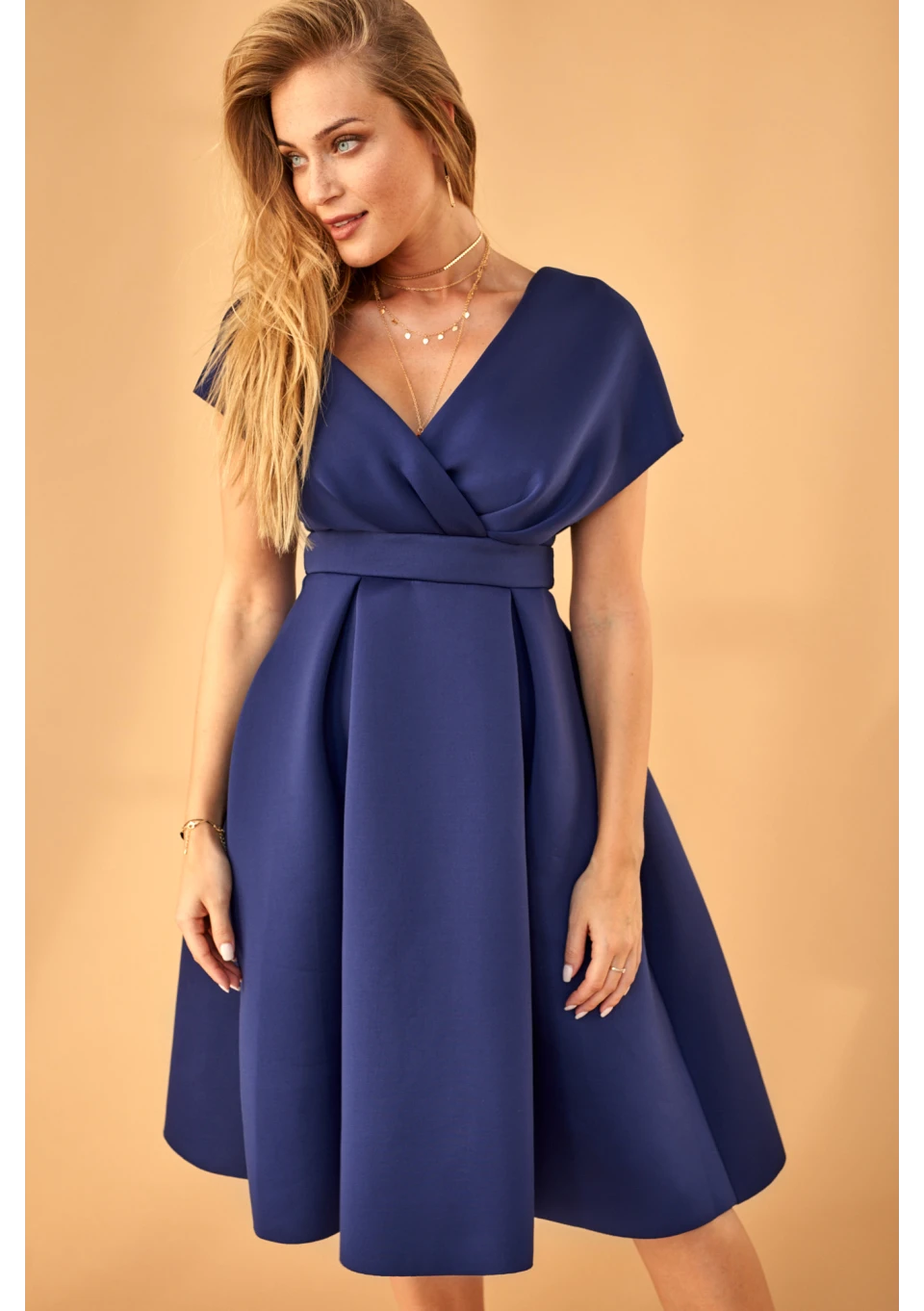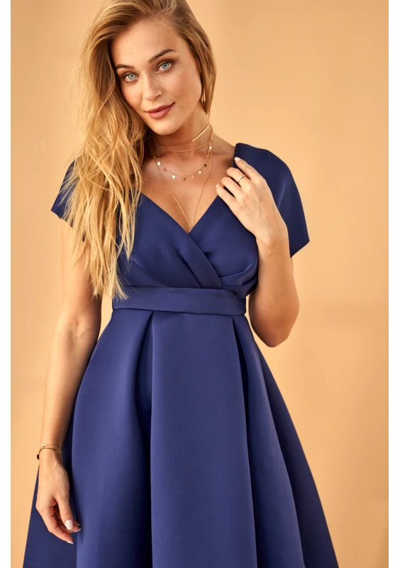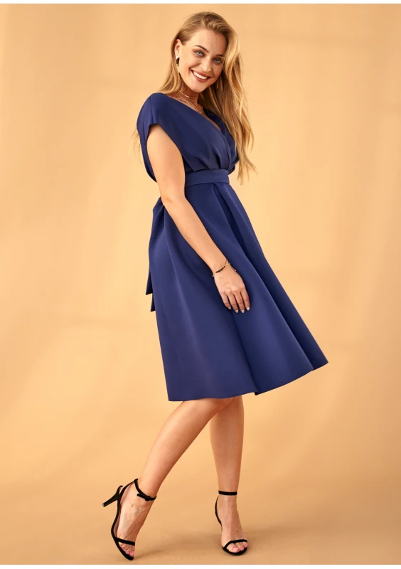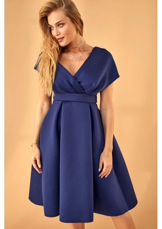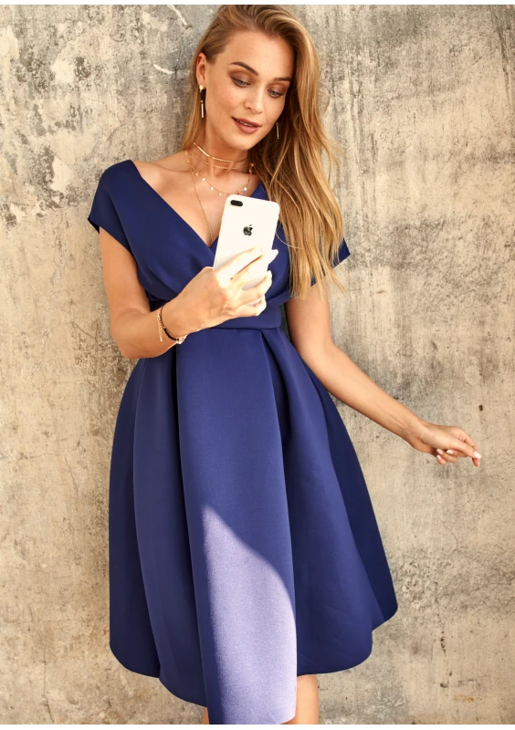 Sukienka z neoprenu w kontrafałdy Granatowa