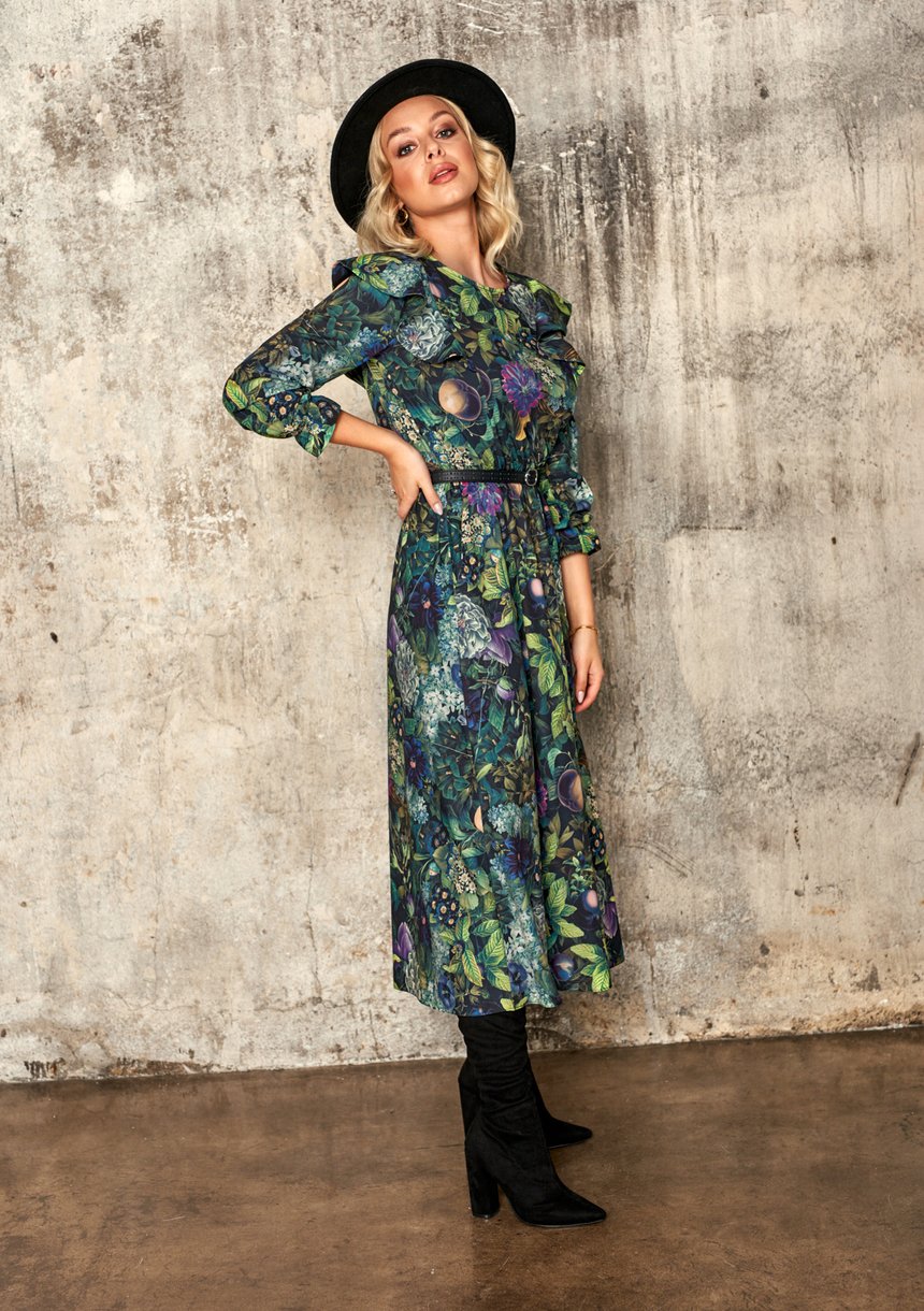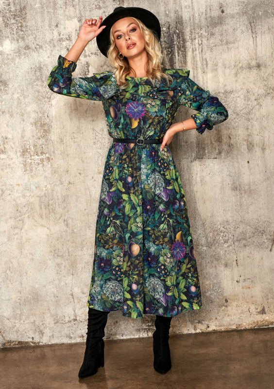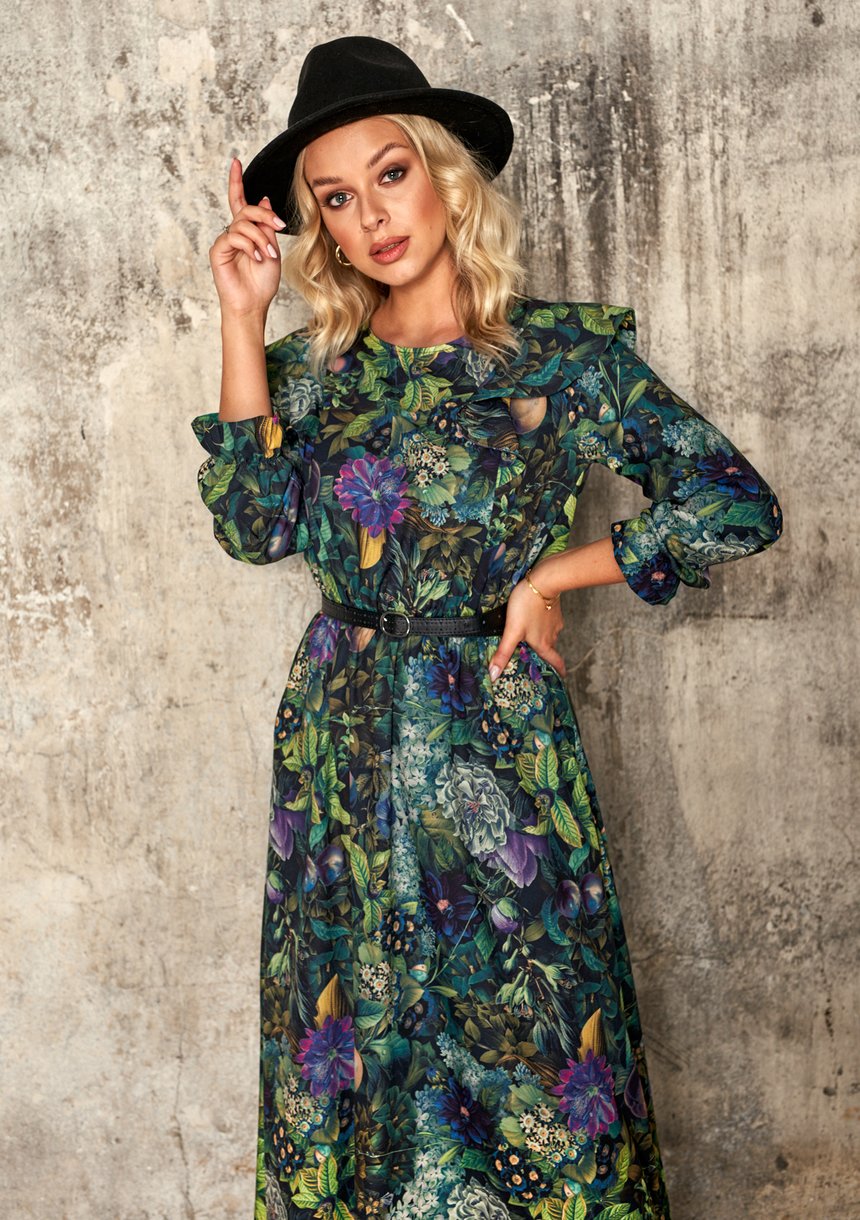 Liliane - Muślinowa sukienka midi z wiązaniem Brown