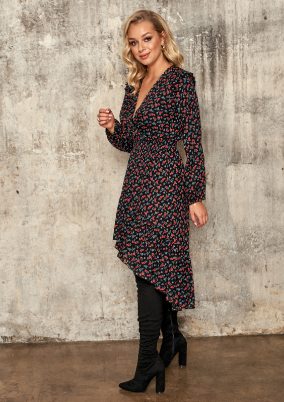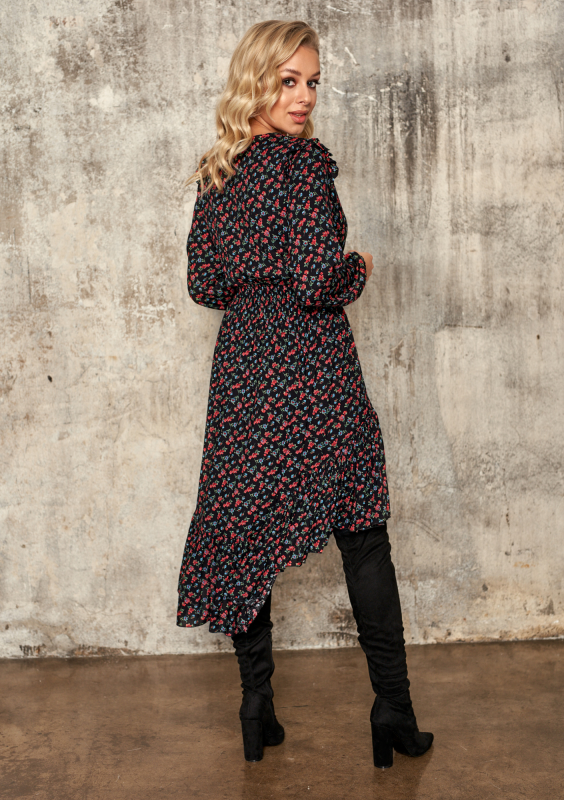 Asymetryczna sukienka z wiskozy w Łączkę