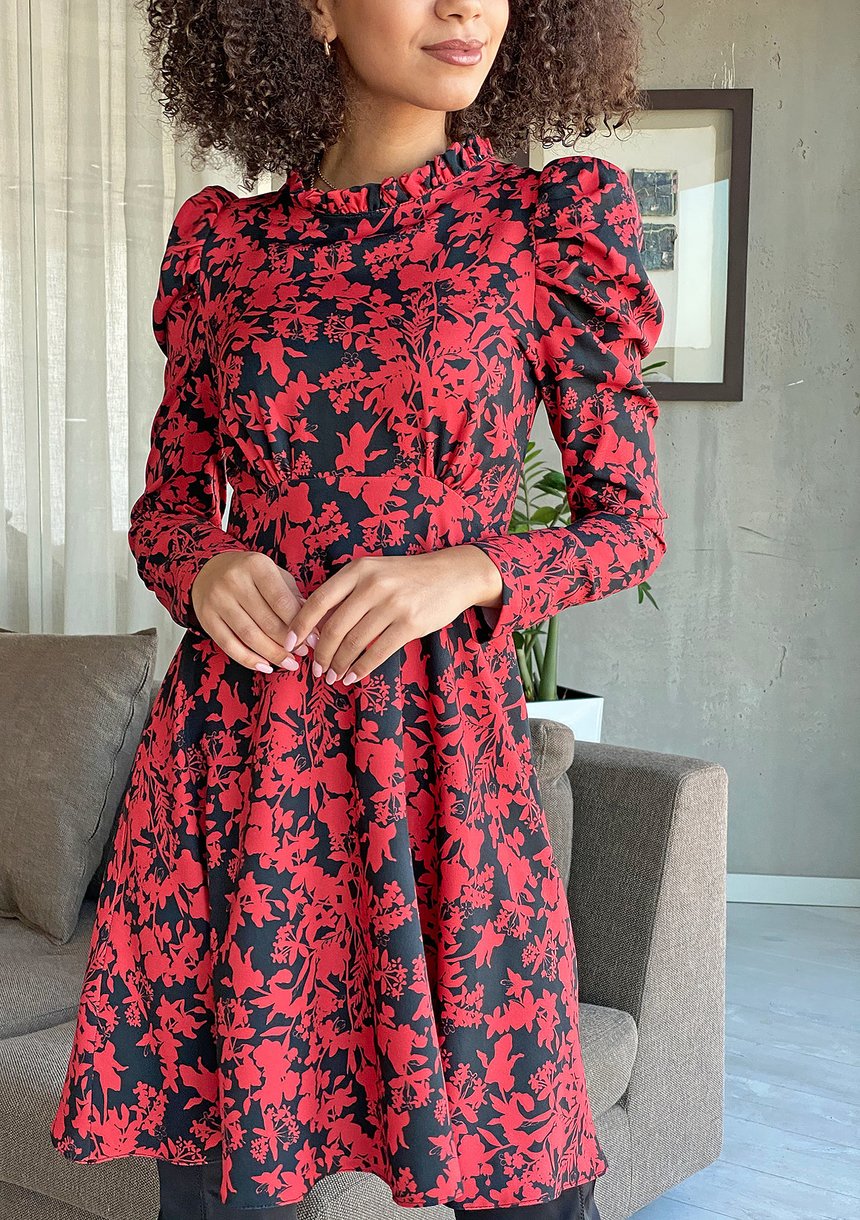 Sukienka o trapezowym kroju z bufką w Czerwony print