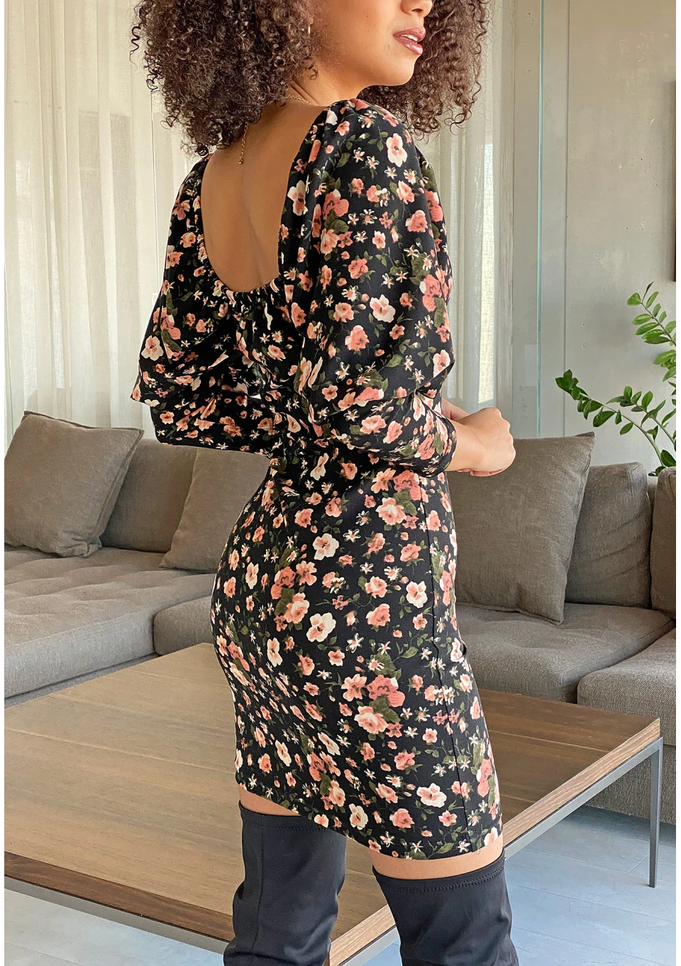 Sukienka z dekoltem karo w kwiatki