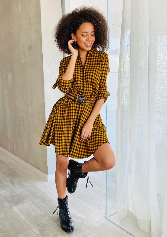Sukienka o koszulowym kroju z klamrami Musztardowa