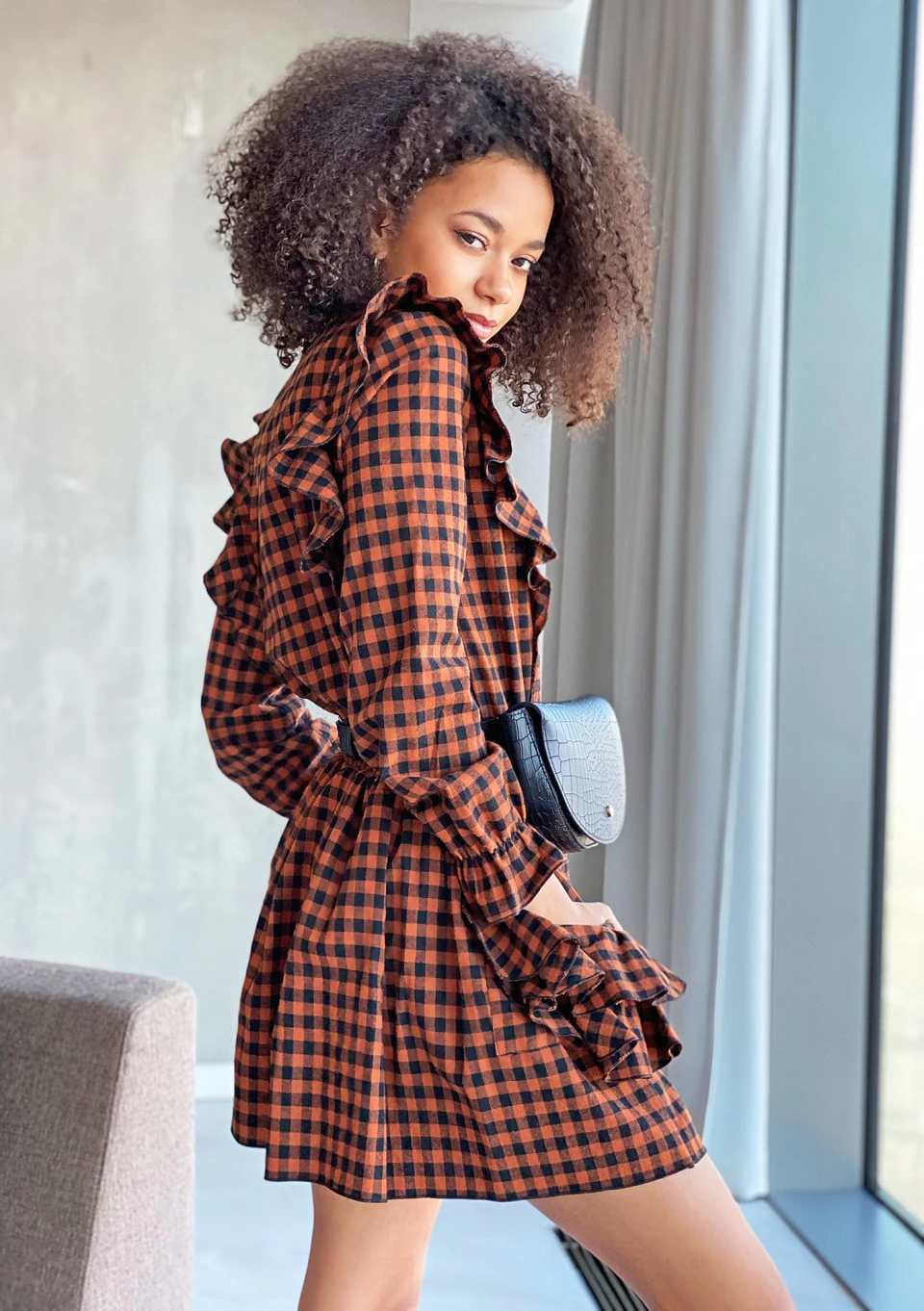 Grace - Rozkloszowana sukienka midi z modelującymi przeszyciami Brązowa