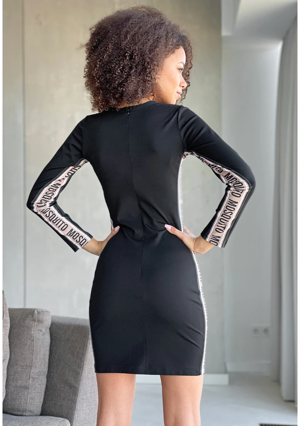 Dopasowana sukienka z lampasem logo Czarna
