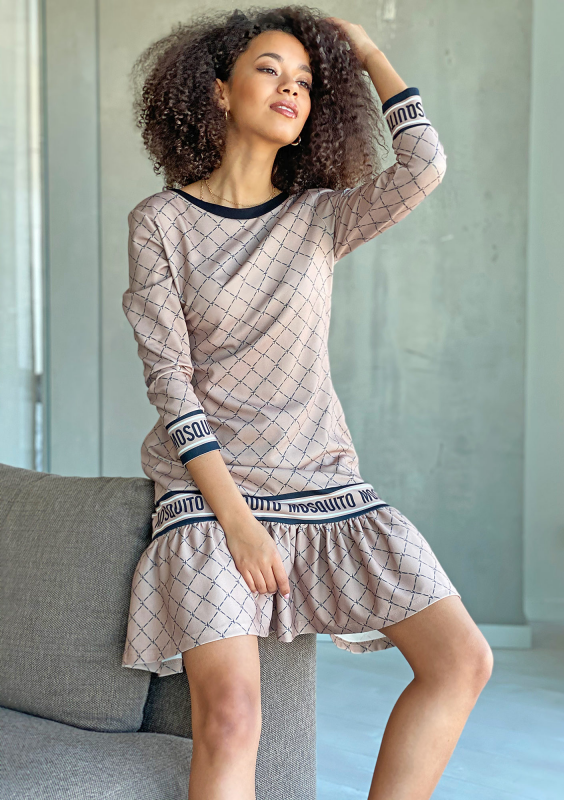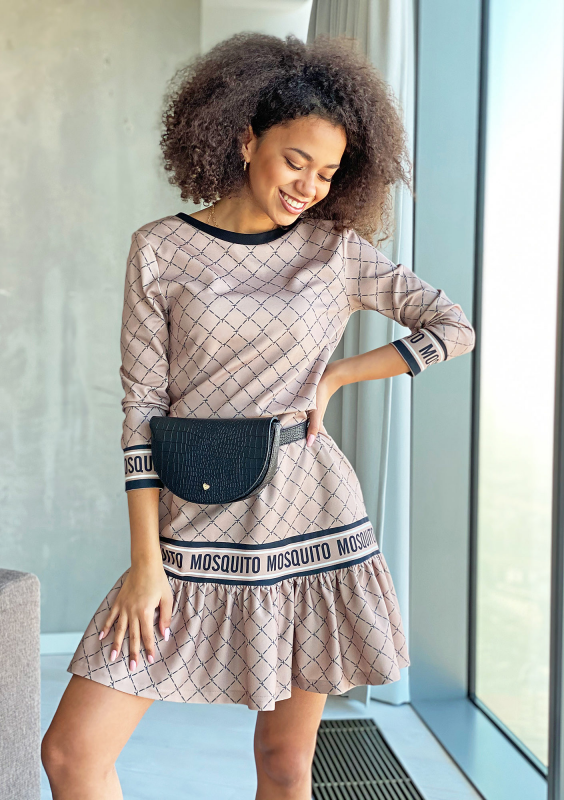 Sukienka logo print z falbaną Beżowa