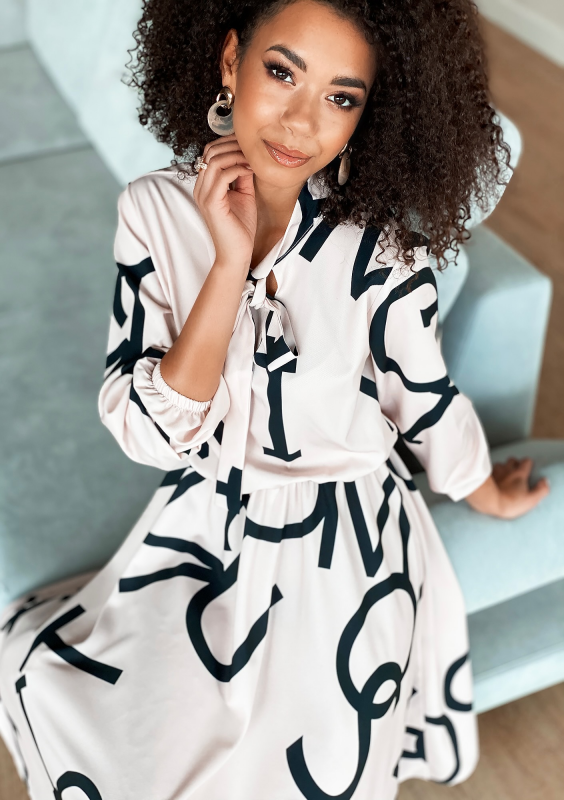 Liliane - Muślinowa sukienka midi z wiązaniem Brown