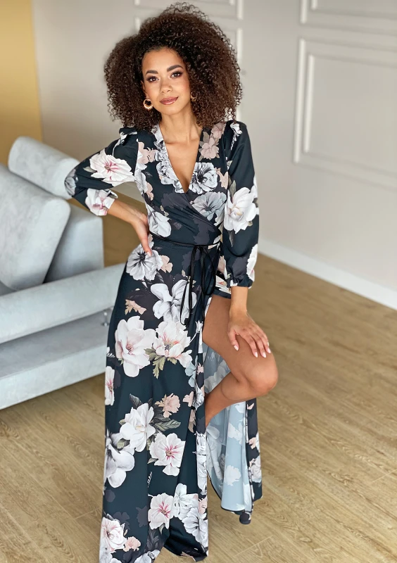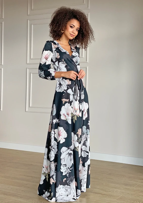 Chiara - Sukienka maxi z wiązaniem Czarna