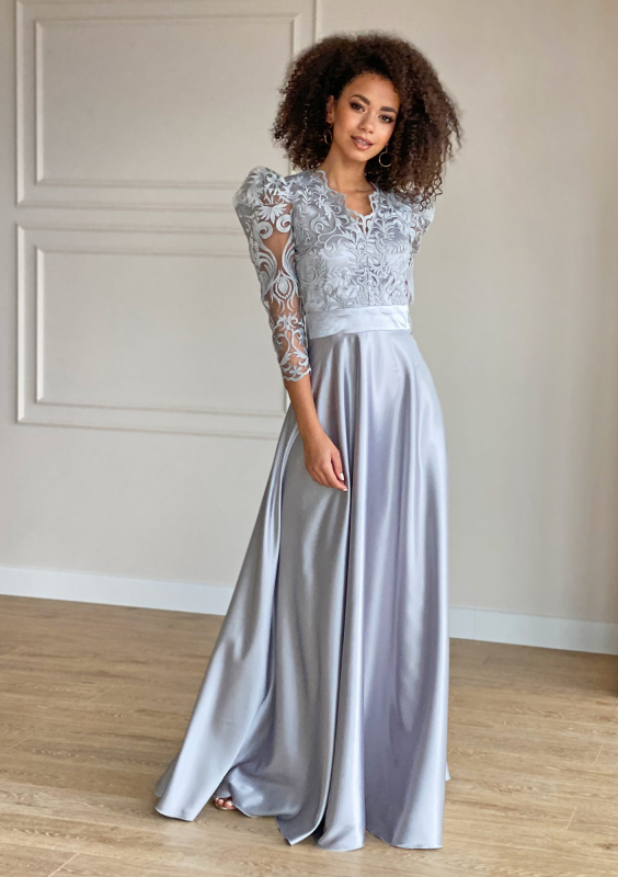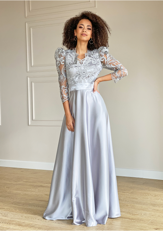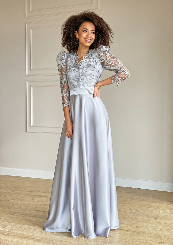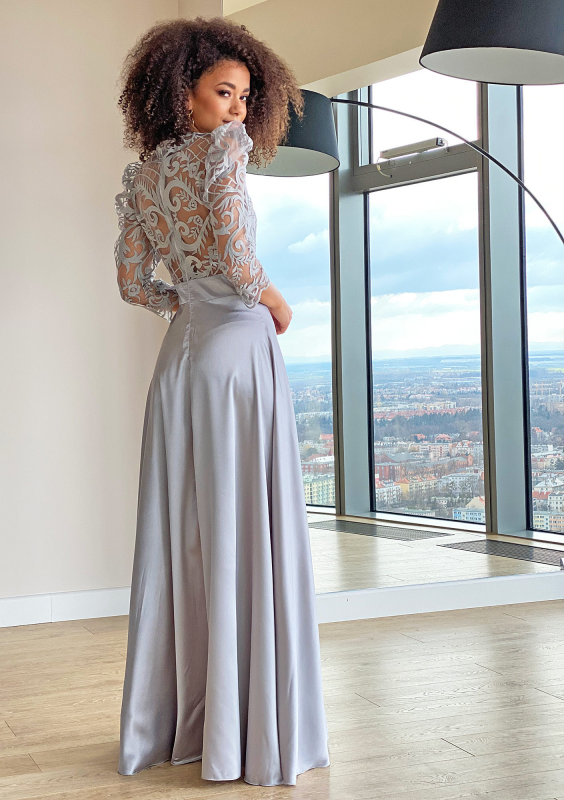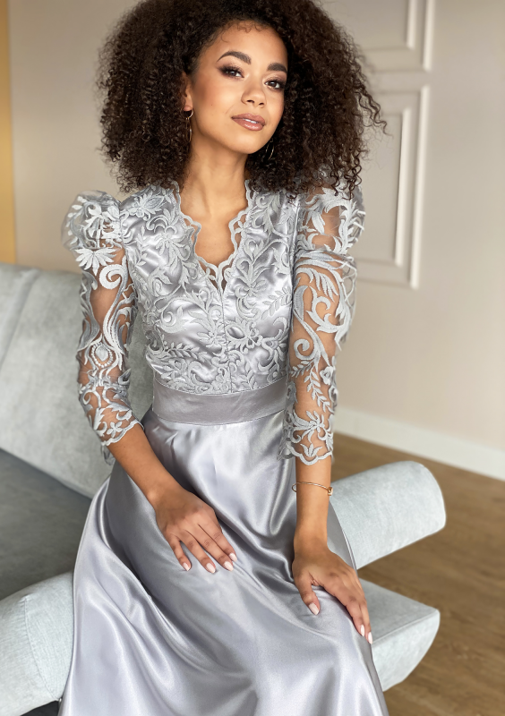 Sukienka maxi z gipiurą Srebrna