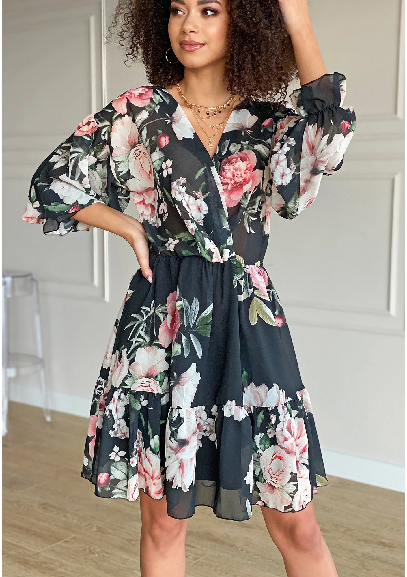 Elegancka czerń i dziewczęce kwiaty? Czemu nie! Kontrastowe połączenia to idealny sposób na nadanie wieczorowej kreacji bardziej kobiecego i zmysłowego charakteru - doskonałym na to przykładem jest czarna, szyfonowa sukienka w różowe kwiaty zaprojektowana specjalnie dla marki Mosquito przez Alicję Komar. Ten unikatowy projekt o długości midi dedykowany jest kobietom o różnych typach sylwetki - kobiecy fason i lekki materiał nie tylko pięknie podkreślą nogi i dekolt, ale też sprawią, że Twoja talia w końcu będzie widoczna. Przekonaj się sama!