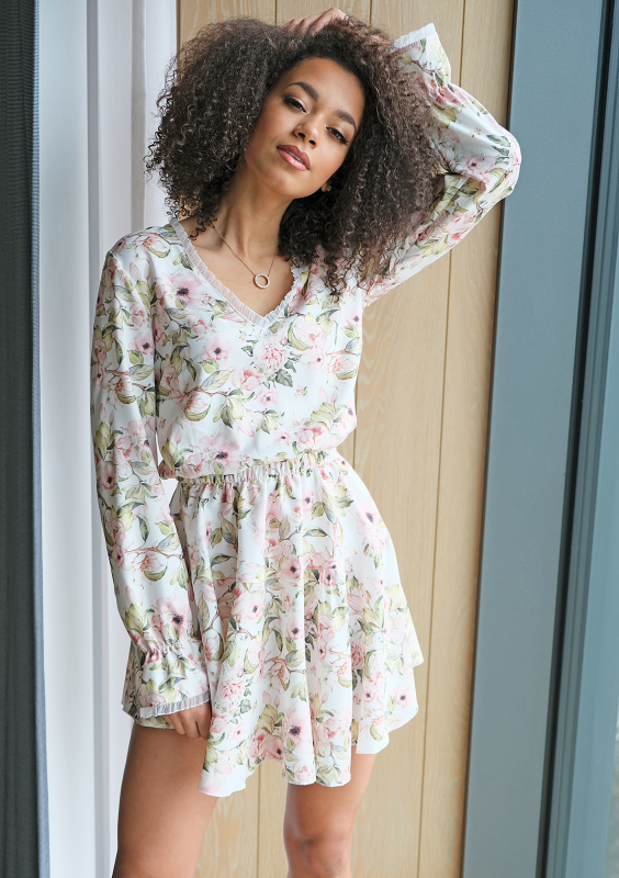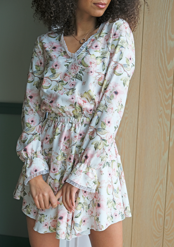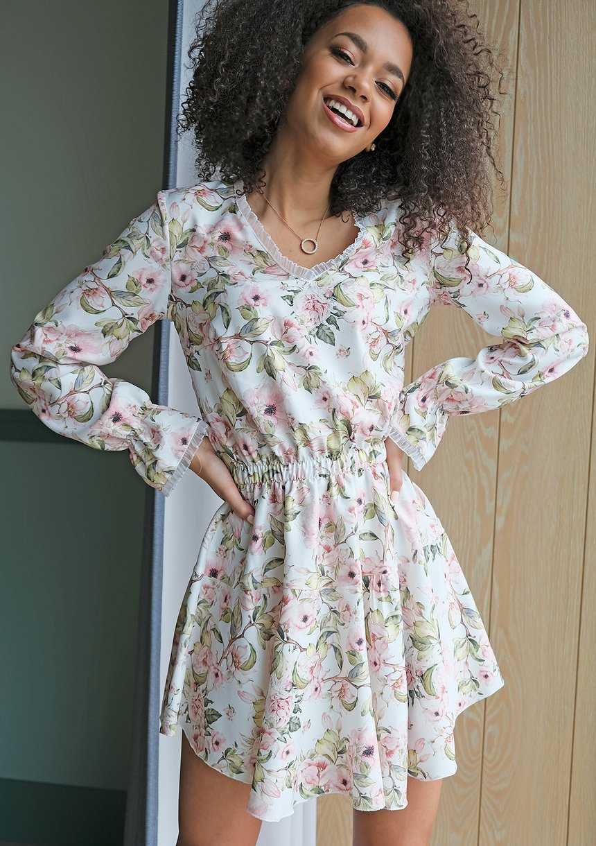 Krótka sukienka spring flower Ecrue