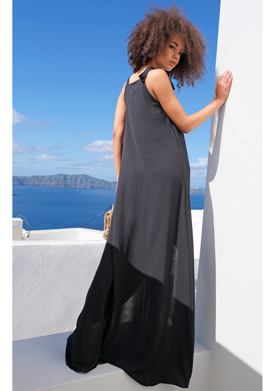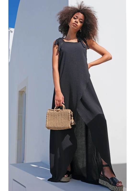 Greta - Sukienka midi z muślinu Czarna