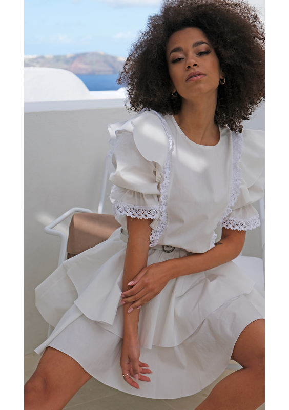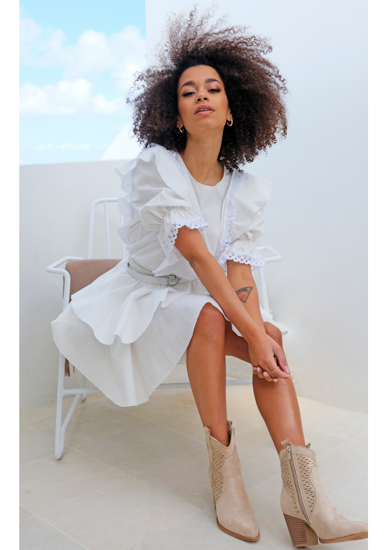 Lilli - Rozkloszowana sukienka z patkami mini Pudrowa
