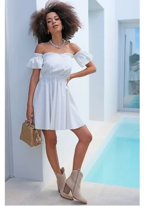 Sukienka z popeliny w stylu hiszpańskim Biała