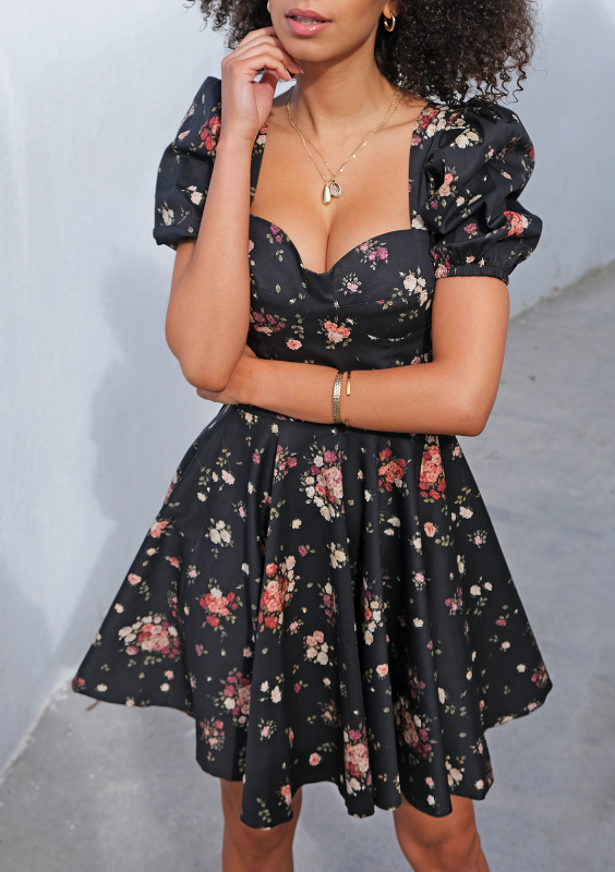 Leyna - Gorsetowa sukienka bombka mini Beige Print