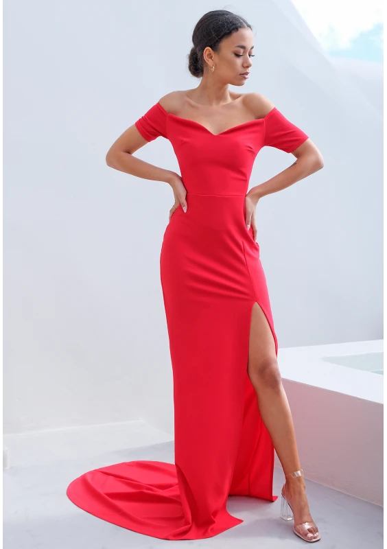 Shani - Wieczorowa sukienka maxi na ramiączkach Bordowa