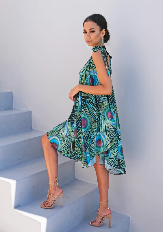 Katie - Sukienka bombka mini w Niebieskie Kwiaty