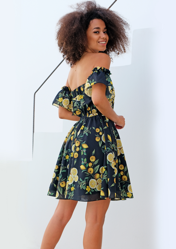 Rozkloszowana sukienka w cytryny
