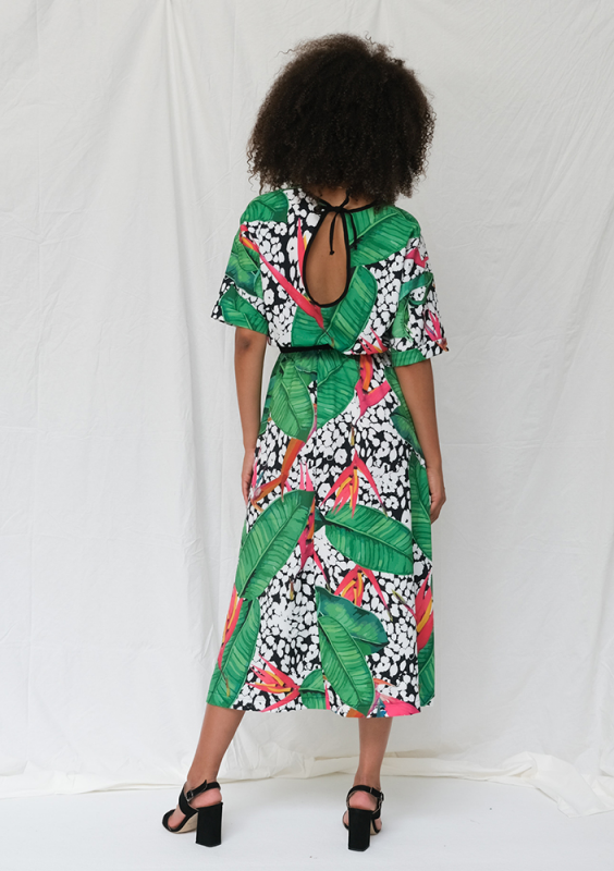 Solene - Dopasowana sukienka midi z wiązaniem na boku Zielona